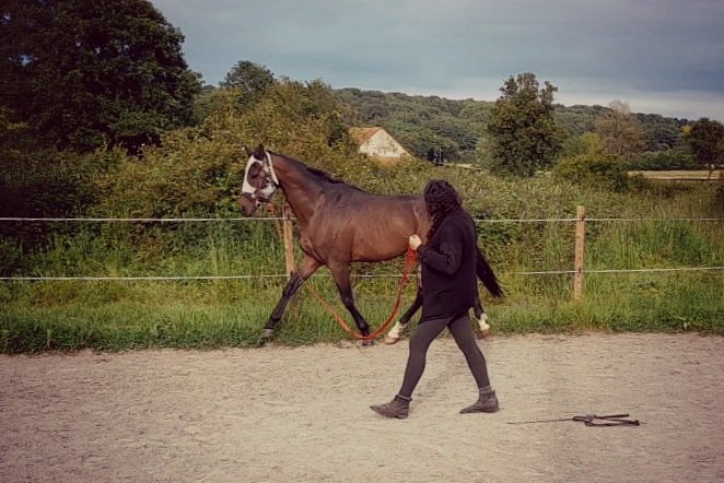 Athos continue d’être un parfait élève et nous abordons nos premières élévations d’encolure montées. Le moment parfait pour évoquer l’effet Push Pull et l’amplification des mouvements naturels du cheval ! Et pour cela , c’est sur le travail inestimable de Dominique Ollivier que je me base !